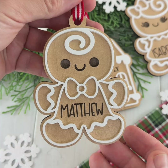 Every ornament is carefully crafted using laser-cut acrylic and natural wood layers. The combination gives each piece a sturdy feel while keeping that classic gingerbread look. The engraved names won’t fade or rub off, so your keepsake will look great year after year.