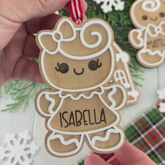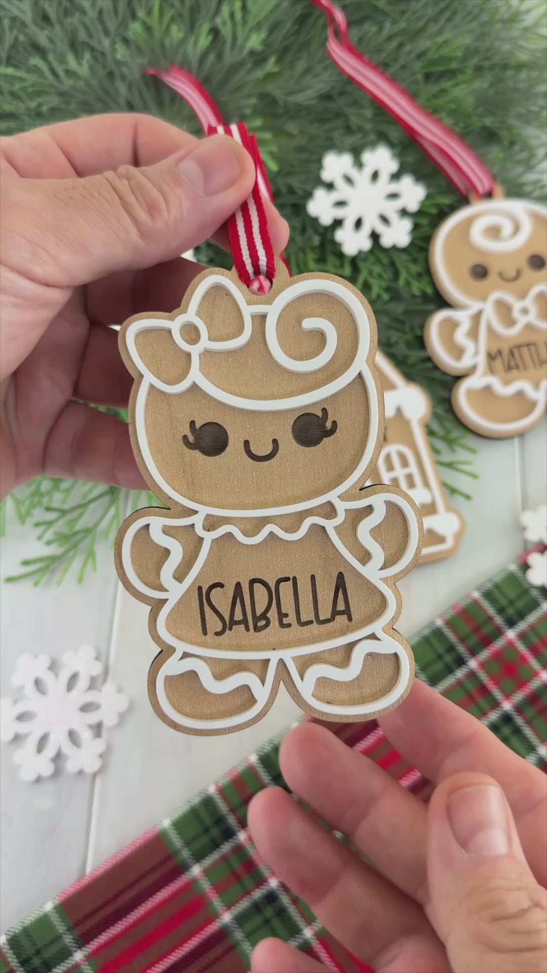 Every ornament is carefully crafted using laser-cut acrylic and natural wood layers. The combination gives each piece a sturdy feel while keeping that classic gingerbread look. The engraved names won’t fade or rub off, so your keepsake will look great year after year.